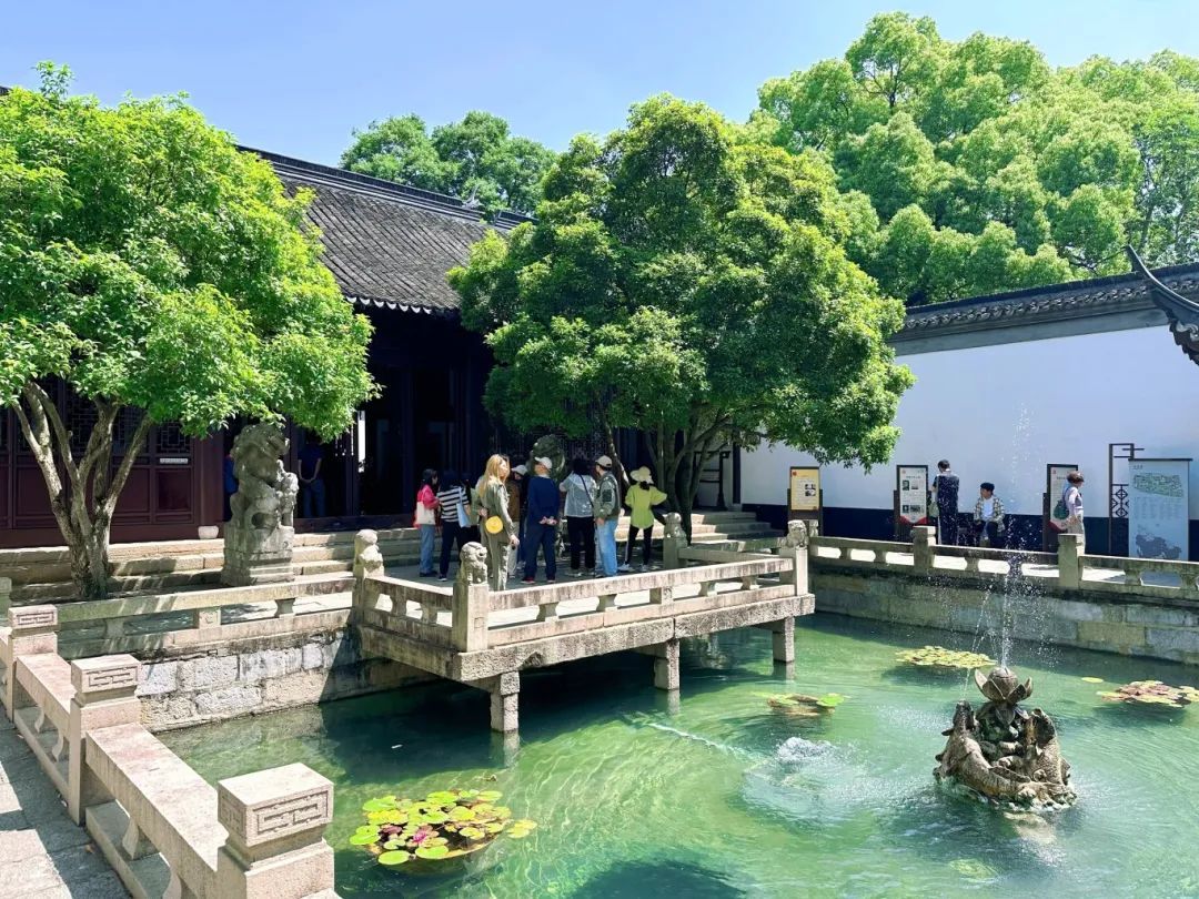 除了花木,“墨色如斓 笔荟华章”艺术画展正在园内的碑刻画廊展厅展出,让游客感受到更丰富的园林文化。“园区整日的游客量在1万人次左右,瞬时峰值在3000人次。在保障方面,我们在园内主要干道和一些具有潜在安全隐患的地方加强巡视,同时绿化部门做好相关的绿化景致、植物配置等保养维护,以最优的面貌迎接各位游客的到来。”醉白池公园主任徐广强介绍。