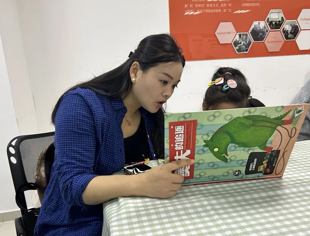 在凉城新村街道社区文化活动中心的活动现场,徐女士带着正读中班的女儿一同参加了亲子阅读指导活动。