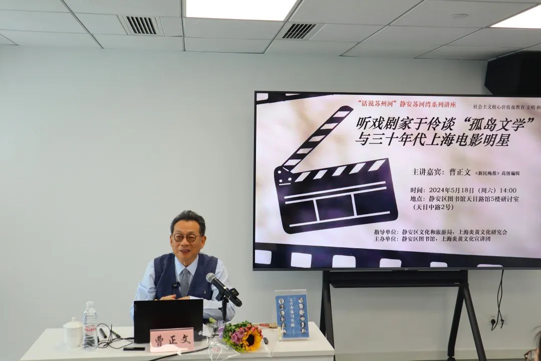 近日,“话说苏州河”静安苏河湾系列讲座第四讲“听戏剧家于伶谈‘孤岛文学’与三十年代上海电影明星”在静安区图书馆天目路馆开讲,特邀《新民晚报》高级编辑曹正文进行主讲。 讲座一开始,曹正文首先讲述了自己为了向戏剧家于伶先生约稿,多次前往于伶位于巨鹿路的寓所拜访的故事。 期间,于伶向曹正文讲述了自己成为上海“孤岛文学”的组织者与领导人之一的经历。于伶在24岁时,参加中国左翼作家联盟,后担任当时上海戏剧界的负责人。1937年至1941年,于伶、唐弢、柯灵、巴人等都创作了不少歌颂民族气节的作品,在当时产生了较大的社会影响。 中华人民共和国成立后,于伶任中国人民解放军文管会文艺处处长、上海电影制片厂厂长,后任上海市文化局局长、中国戏剧家协会副主席、中国电影家协会副主席、上海文联副主席与上海作协副主席。 曹正文回忆说,于伶先生在讲述自己创作电影文学剧本《聂耳》时,还谈到自己与聂耳的交往经过以及创作这部作品的初衷和过程。 本次讲座还邀请到老上海风情掌故和电影戏剧明星研究者钱岗,上海市作家协会会员、上海女摄影家协会副会长丹孃参加,分享上个世纪三十年代上海电影明星的精彩故事。