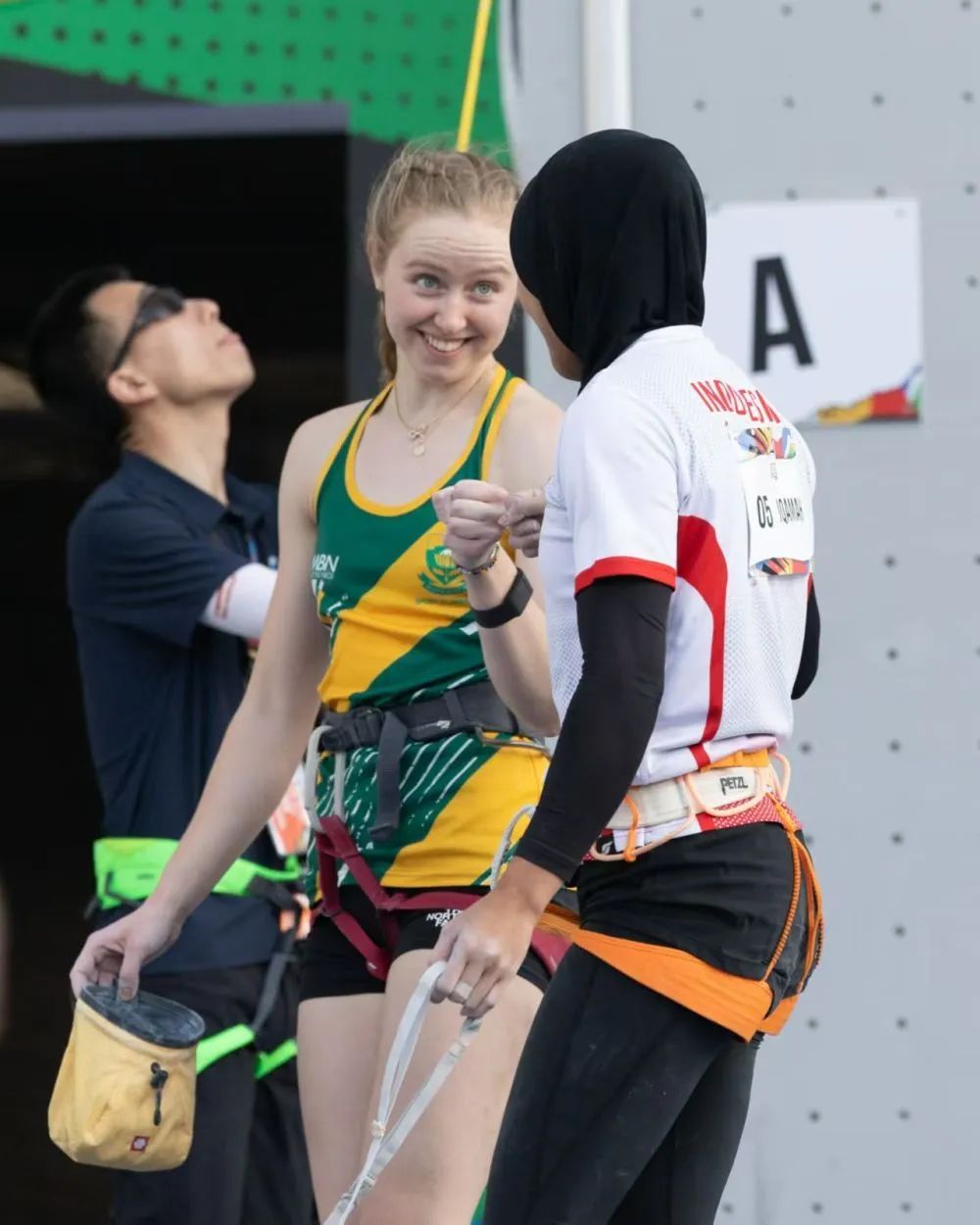 速度攀岩的决赛阶段通常需要16名选手进行两两对决的淘汰赛,奥茨说,由于非洲的攀岩运动员不多,所以在洲际比赛中,如果她多比一项速度赛,有时就意味着非洲能多拥有一次人数相对完整的速度决赛。“这对于非洲攀岩来说是意义重大的。在我的祖国南非,我们有着很棒的自然岩壁攀岩资源,但是竞技攀岩还很落后。像很多人一样,我想推广这项美丽的运动。”