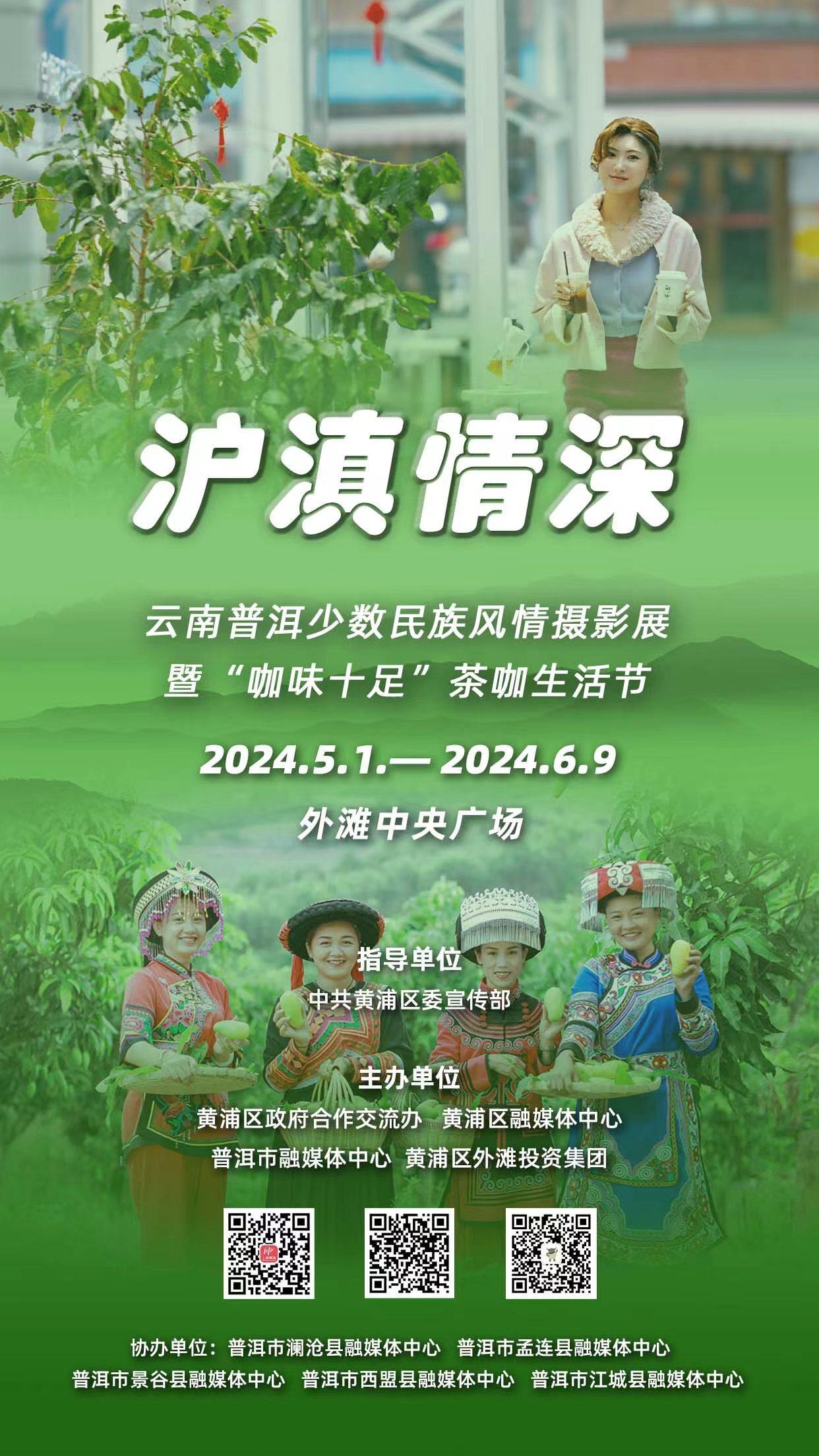 2024年5月1日—6月9日(上海外滩·中央广场),由中共黄浦区委宣传部指导,黄浦区人民政府合作交流办、黄浦区融媒体中心、普洱市融媒体中心、黄浦区外滩投资集团主办的“沪滇情深”——云南普洱少数民族风情摄影展暨“咖味十足”茶咖生活节,旨在通过摄影的艺术形式,展现普洱地区丰富多彩的少数民族风情,同时通过茶咖文化的融合,让更多市民游客领略云南普洱的独特魅力。