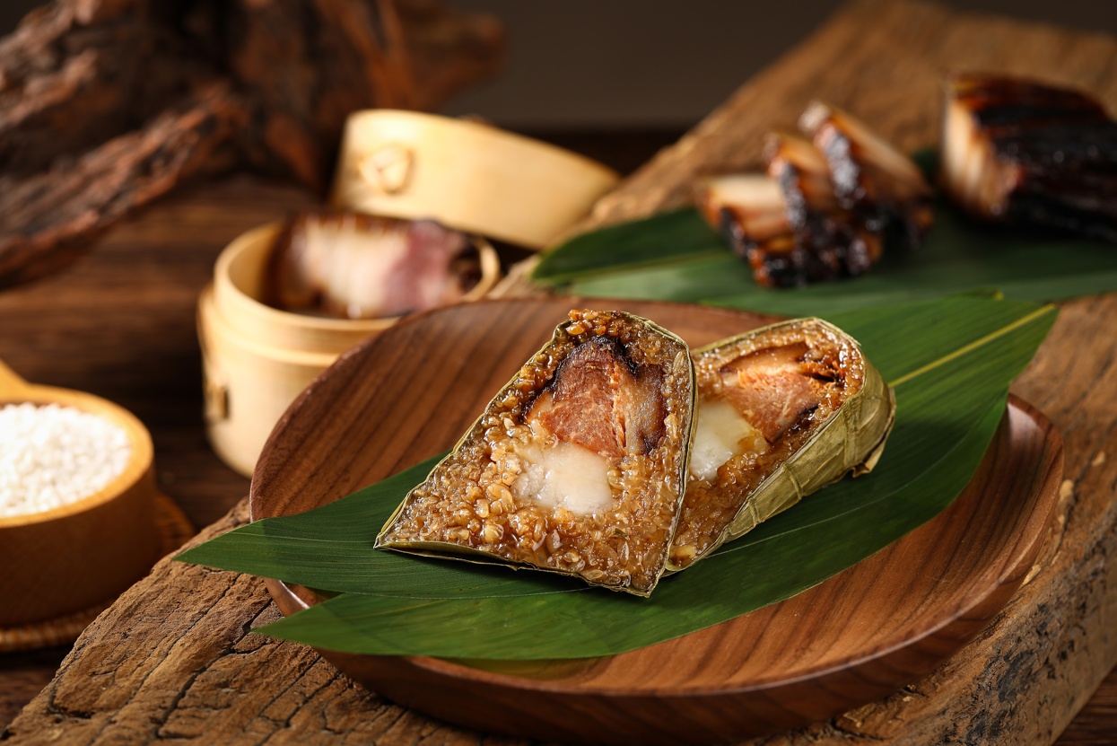 同时,松鹤楼还推出了丰富口味的粽子,共有高汤鲍汁大肉粽、秘制酱肉粽、五谷杂粮粽、青稞芋泥粽等八款口味。其中,秘制酱肉粽是经典主打,酱肉以肥而不腻的优质五花肉为主要食材,用松鹤楼秘制的酱汁进行调味,吃起来软糯咸香,回味带有微微甘甜,属于经典的苏式风味。