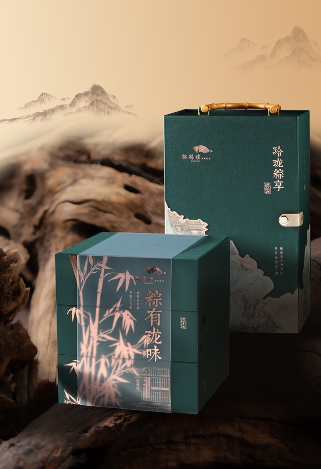 仇英的《桃源仙境图》、竹报平安节节高……这些充满浓郁中式文化的元素,成为主打国风文化路线的松鹤楼端午粽礼盒的创意灵感来源,其还牵手同样是中华老字号的童涵春堂推出定制款端午香囊,还原“吃粽子、佩香囊”等端午食俗。