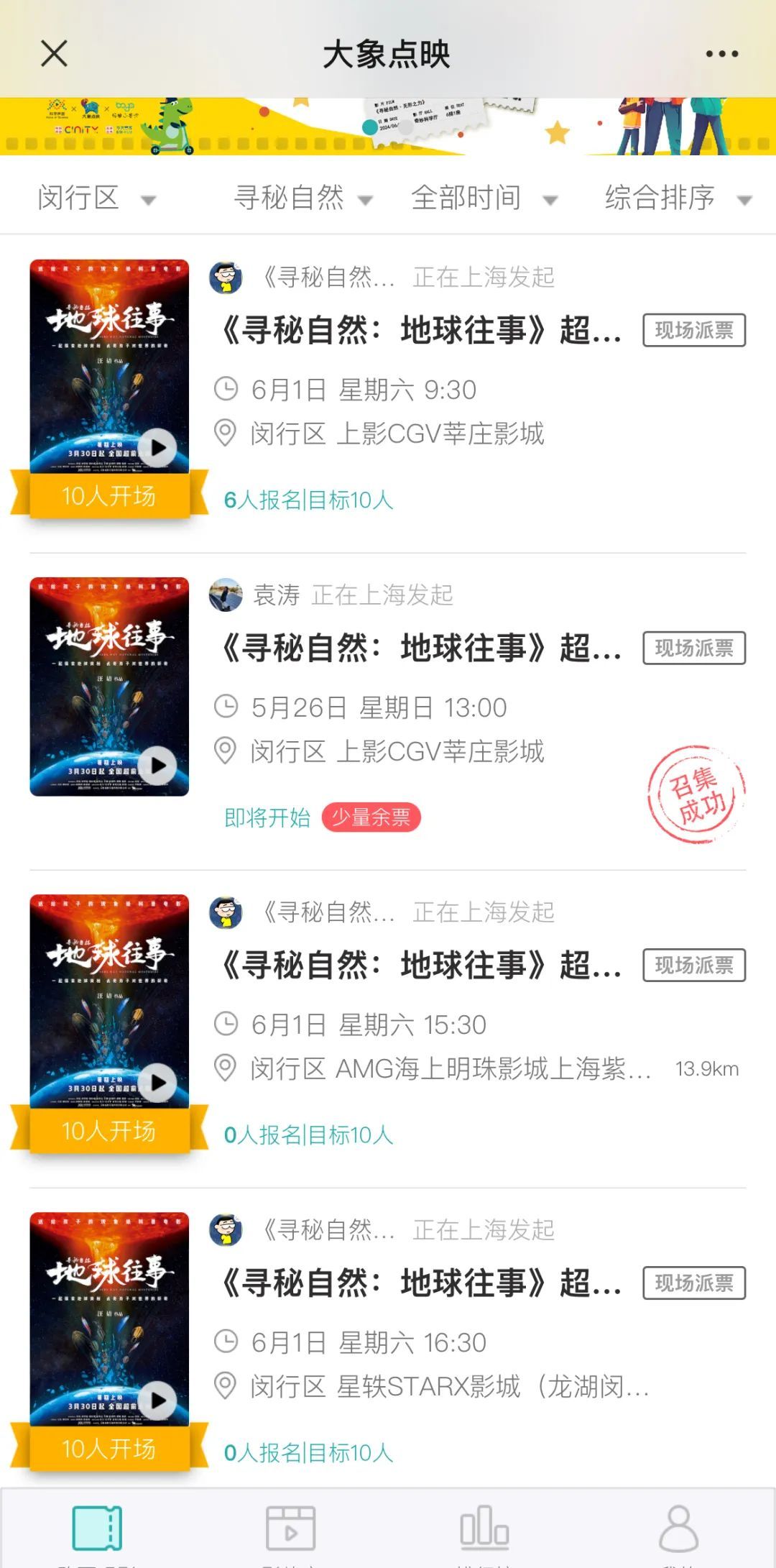 特别提醒:如5月28日之前单场不满10人购票,放映将被取消,已支付票款全额退回