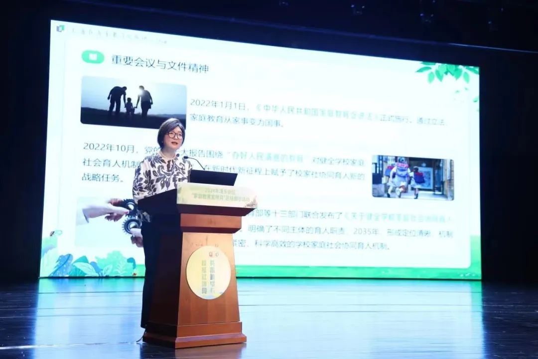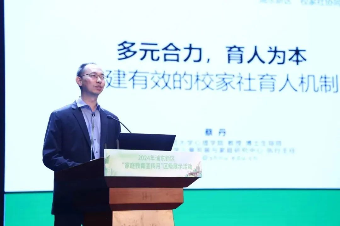 活动现场举行了微讲座,上海师范大学心理学院党委书记、儿童发展与家庭研究中心执行主任蔡丹教授就如何以多元合力构建有效的校家社育人机制分享方法与建议,强调学校、家庭与社会互动中应尊重儿童青少年心理发展规律和个体差异,尊重孩子的个性和情绪问题,促进亲子关系、师生关系、同伴关系生成,形成良好的家校社育人环境。