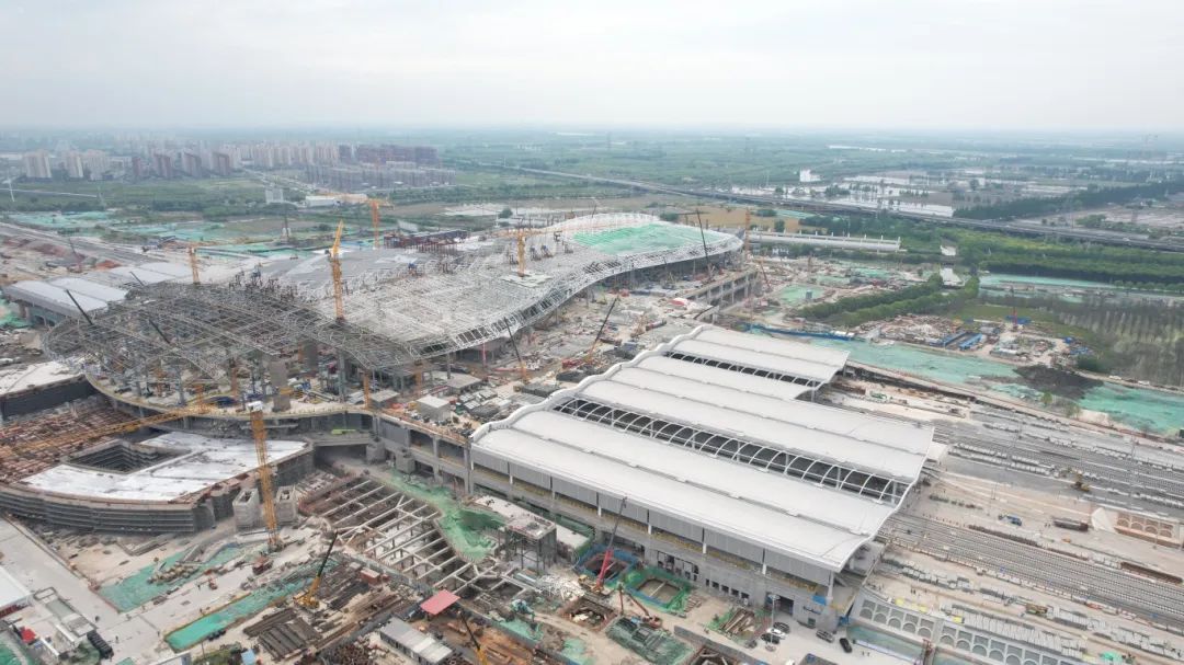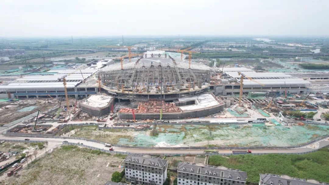5月22日,松江南站正式更名为上海松江站。当前,新建站房已完成钢屋盖合龙,进入后续的内部精装修和幕墙施工阶段。