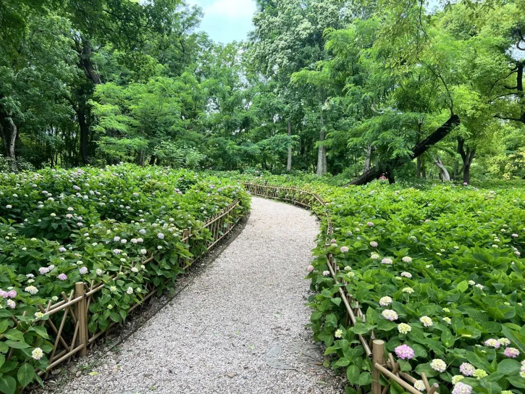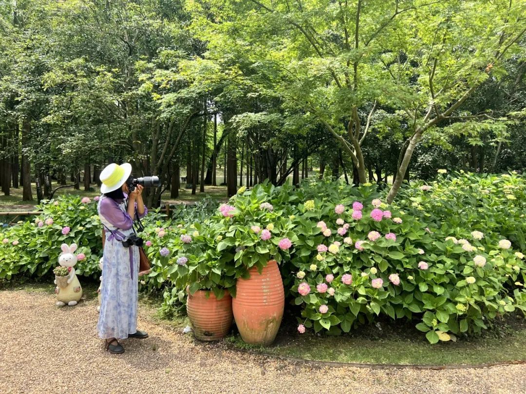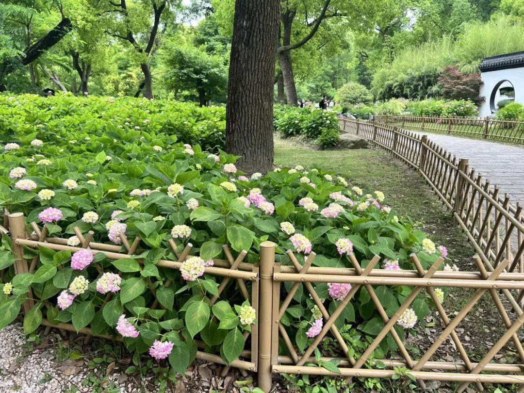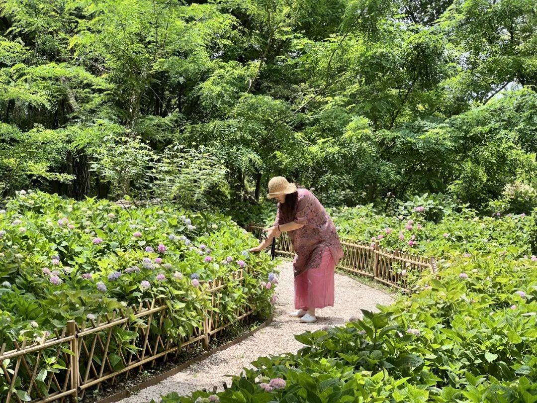 在游园的过程中,也有游客纳闷,为什么今年的八仙花开得略显“小巧”,不似往年的美艳大方,反倒像极了江南女子的秀美,花朵直径普遍不大,一个个小而美,别有一番风味。