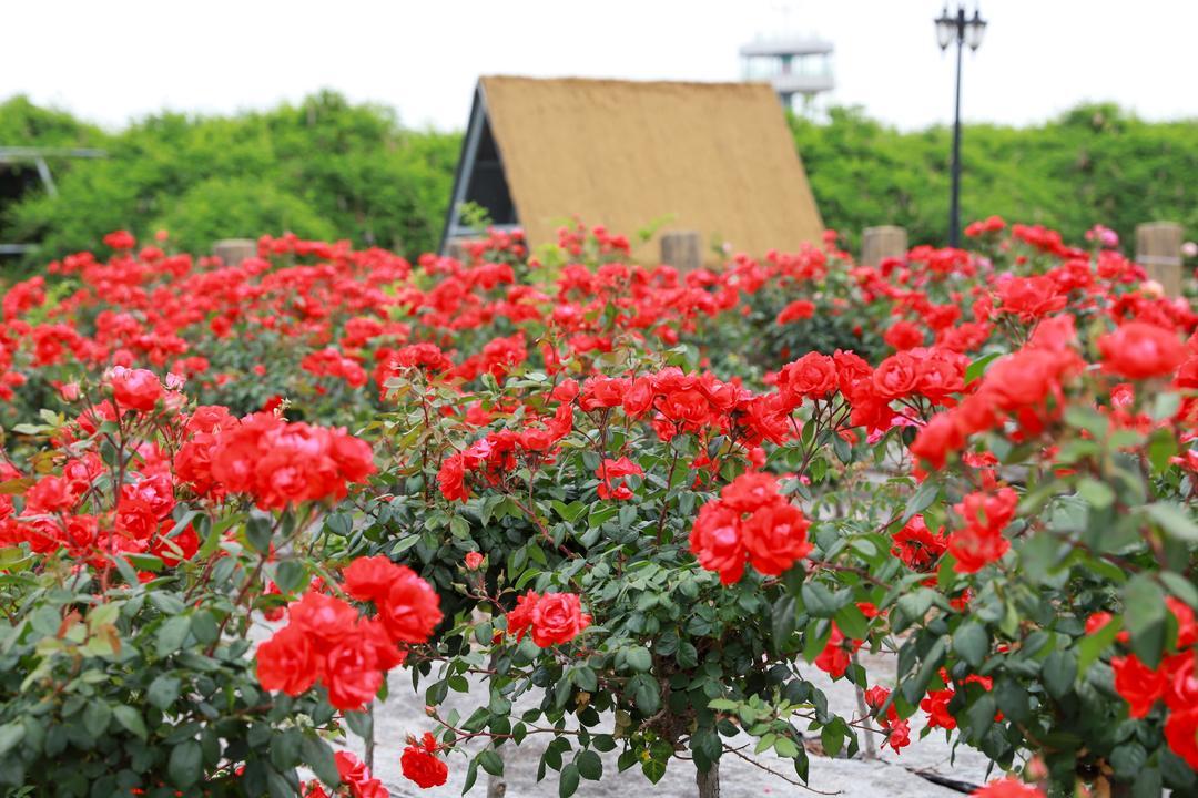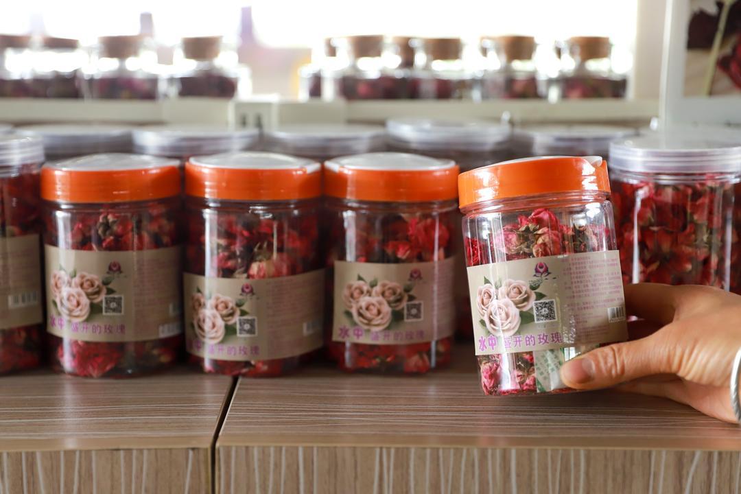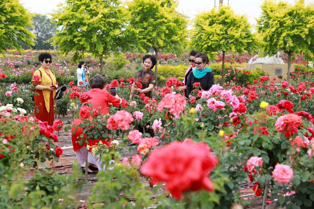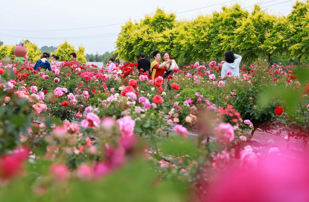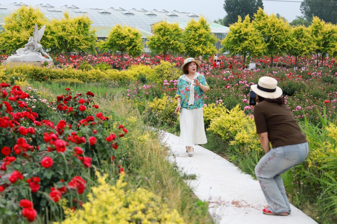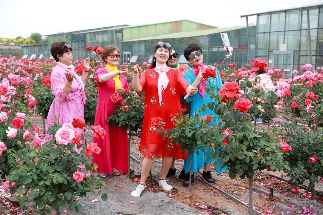 5月21日,青岛市即墨区灵山街道“玫瑰小镇”产业园内,各种玫瑰花绽放,吸引了游客前来游玩打卡。玫瑰除了观赏外,可食用品种还被制成了玫瑰茶、精油、玫瑰饼等产品。