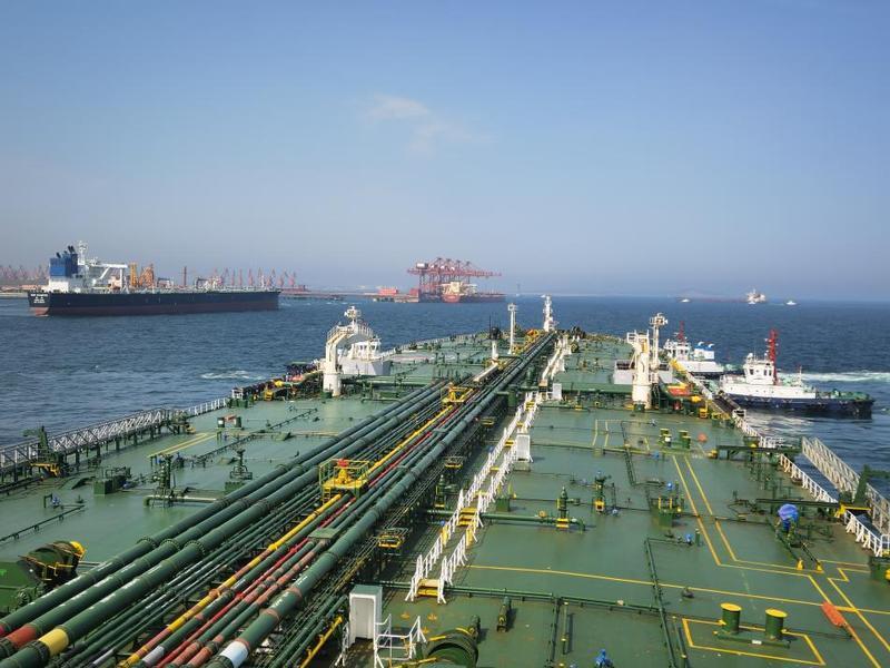 5月19日,青岛引航站在董家口港区又完成一次高难度引航作业。船长332米、吃水22.4米的“华夏6”轮,满载原油,首次在引航员的精准操作下,稳稳停靠在董家口D22泊位,刷新了该泊位最大靠泊吃水纪录。