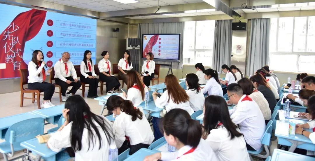 仪式后,全区大队辅导员围绕“九年少先队仪式教育”作进一步交流,就如何创新、丰富和深化仪式教育内容进行深入研讨。
