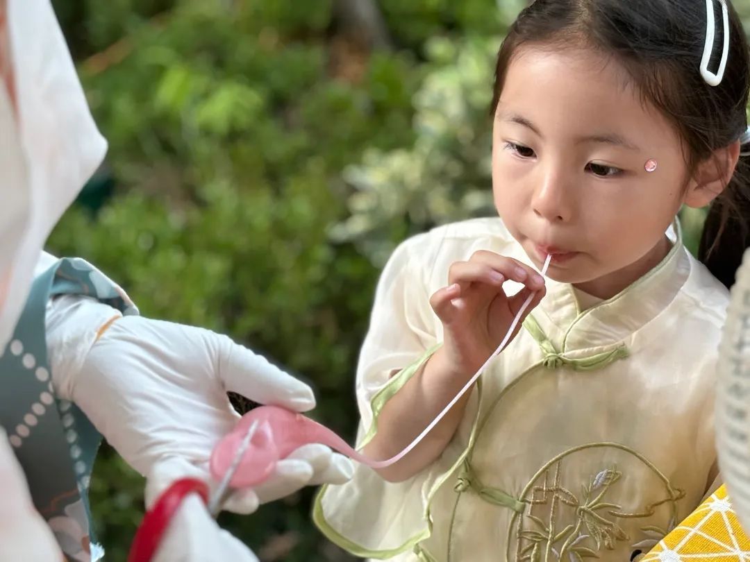 晚上6时许,在九峯里社区广场上,一座仿明代制式的夜间集市开张了。来自小昆山镇名小吃店、非遗传承人、党建共建单位的摊主们身着汉服,展示着精致文创和传统小吃,不时与过往居民互动,带领大家“穿越”时空。