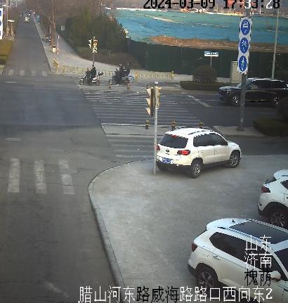 3月15日18时许,济南市公安局交警支队槐荫大队指挥中心接群众报警称,腊山河东路威海路路口西南角人行信号灯被撞,导致损坏故障。民警迅速调取路口监控,发现一辆鲁N号牌的白色SUV倒车时撞到了信号灯杆,信号灯上有物件脱落,一驾驶人下车查看后便驾车逃逸。民警立即查询该车车牌信息,然而查不出任何信息,难道是假车牌?线索似乎中断。