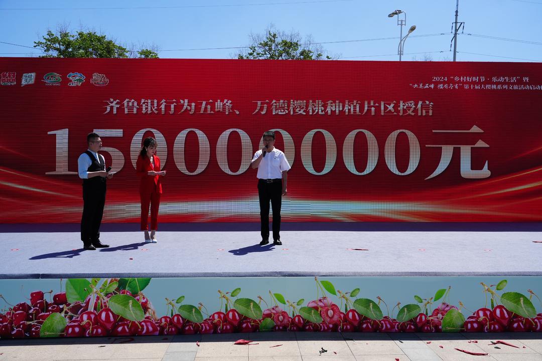 在今年的“乡村好时节·乐动生活”暨“大美五峰 樱有尽有”第十届大樱桃系列文旅活动启动仪式上,齐鲁银行长清支行为长清区五峰山街道和万德街道合作社代表授信1.5亿元。有了这笔授信,樱桃种植户可极大减轻资金压力,放心进行产业升级。