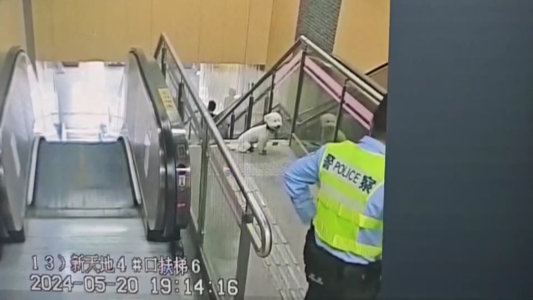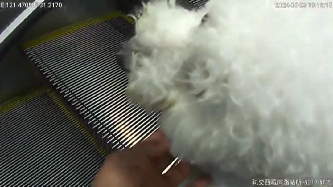 5月20日晚7点多,地铁10号线一大会址新天地站的4号口,突然迎来一位“不速之客”。一只毛茸茸的白色小泰迪似乎是迷了路,在楼梯口左顾右盼,一会想坐自动扶梯下楼,一会又爬了上来,候在楼梯口,反复徘徊了一阵,也引发来往乘客的注意。