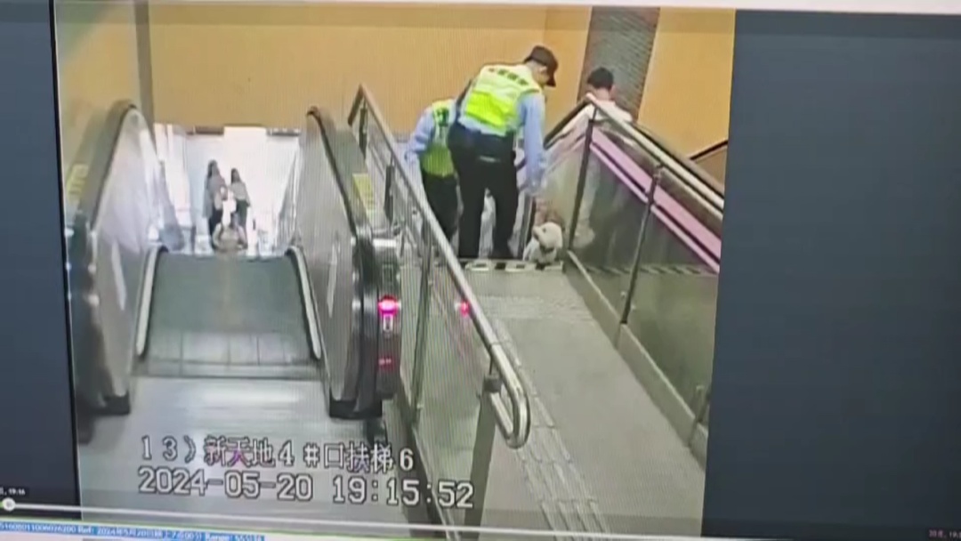 “小狗看上去比较干净,我觉得不是流浪狗,应该是有主人的。我走过去的时候,它头背对着我,有点侧身,我感觉是有点害怕。我自己本身也养过法斗和猫咪,这种小型犬可能比较胆小一点,看到我也有点紧张,我想着如果径直朝它走去,小狗可能会跑到站厅里去,那就更难抓了。我就跟辅警说,你站在边上不要动,我先从电梯下去,绕到它背后,我们两个人一前一后。”