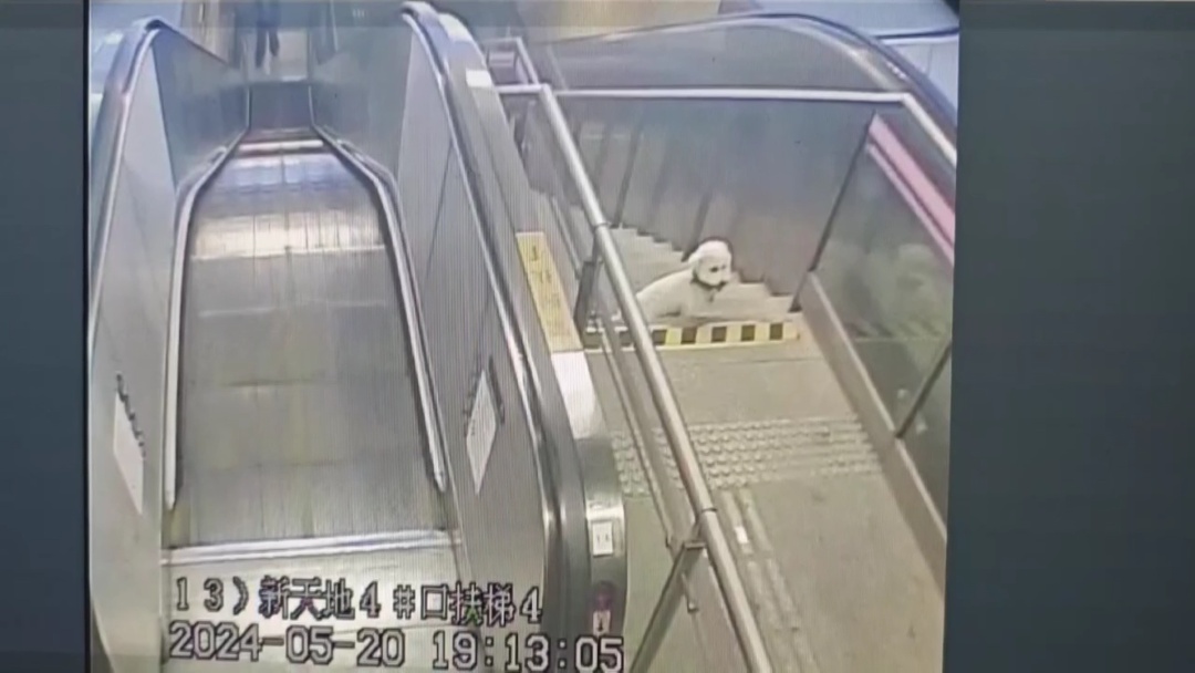 公共视频画面显示,一只白色的小狗突然入镜,出现在了四号口,随即便在现场开始徘徊,在楼梯口蹲守了一会,左顾右盼,随后又来到上行电梯口,直接“逆行”上电梯,这般行为引得过路人拿出手机拍起了视频,不过几秒钟后,狗狗便又顺着电梯回来了。而轨交总队西藏南路站治安派出所民警徐寅超第一时间发现了狗狗。