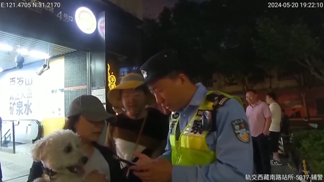好在狗脖子上有一个二维码,徐寅超通过扫码,找到了小狗的主人。原来,狗主人本来带着狗在复兴公园里头玩耍,因为在草坪上撒欢所以也没有牵绳子,不料一个转身狗狗就不见了,可能因为天黑的缘故,小狗跟错了主人,不知不觉走到了五六百米开外的地铁站。接到民警电话时,狗主人已经找得万分焦急,随即就赶来现场领回自己的爱犬。