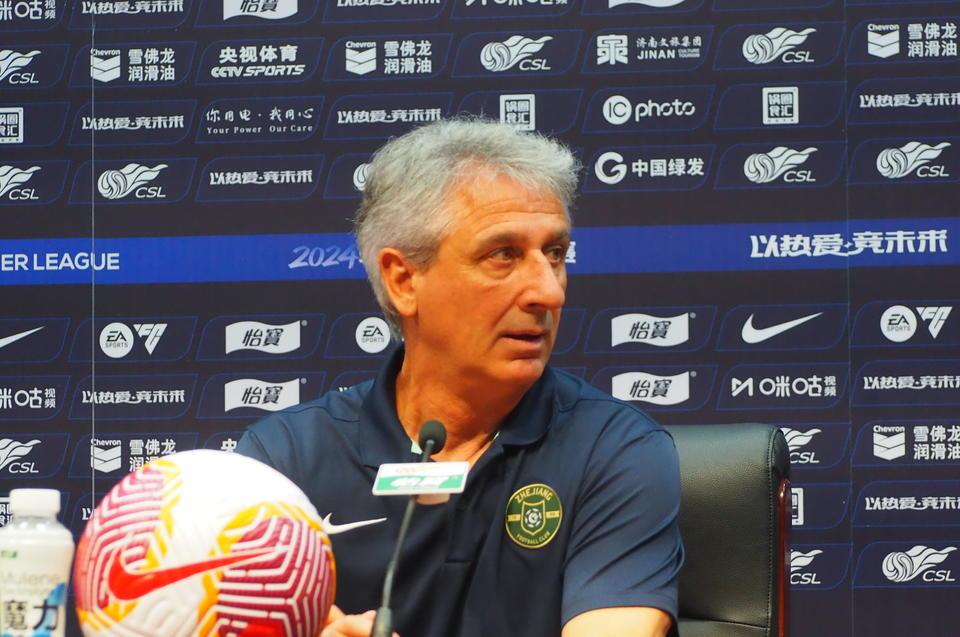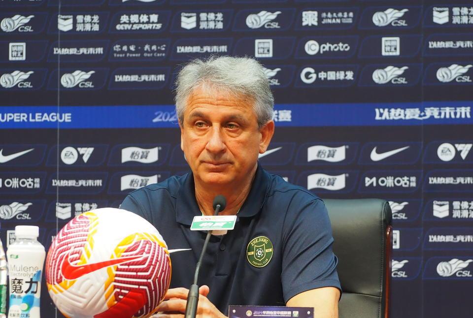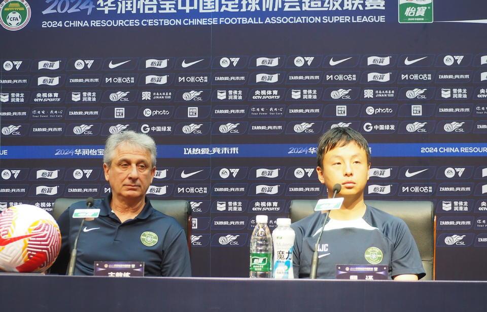 5月24日,济南奥体中心体育场,山东泰山VS浙江队客队新闻发布会举行,浙江队主教练乔迪和球员程进出席。