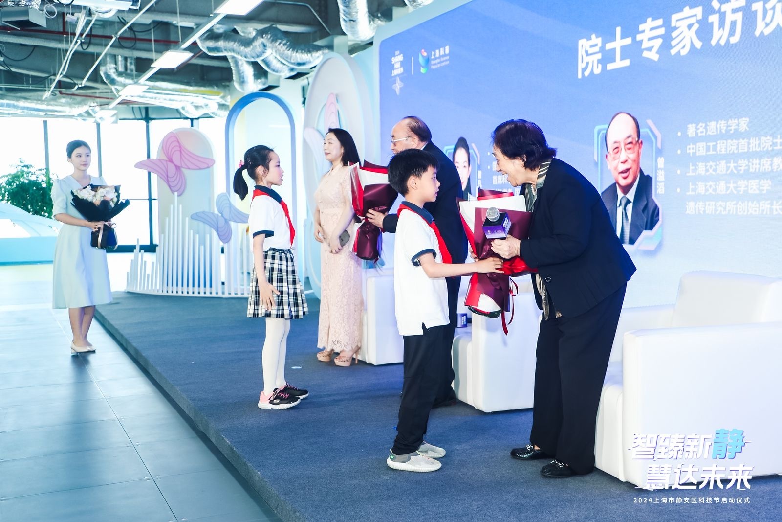 著名遗传学家、中国工程院首批院士、上海交通大学讲席教授、上海交通大学医学遗传研究所创始所长曾溢滔院士,著名遗传学家黄淑帧教授,著名医学生物学家、长江学者、静安区科协副主席、上海交大医学遗传研究所所长曾凡一教授,上海市科协党组成员、副主席倪前龙,上海市科委二级巡视员陈宏凯,静安区人大常委会副主任周伟,静安区副区长张军,静安区政协副主席宋大杰,以及市科委、市科协、相关处室、区公民科学素质工作领导小组成员单位分管领导100余人参加现场活动。静安区科协抖音号全程直播,吸引了7.6万人线上观看。