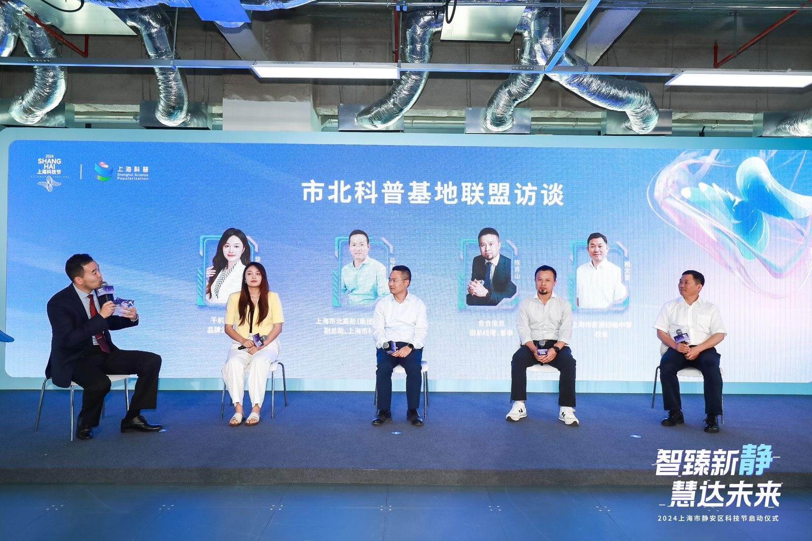 启动仪式上,市北高新(集团)有限公司、千机科技集团、彭浦初级中学、合合信息相关代表参与科普基地联盟访谈,从不同角度和现场观众分享了科技企业参与科普事业发展的心得体会,表达了青少年对了解科技企业研究成果的热切盼望。