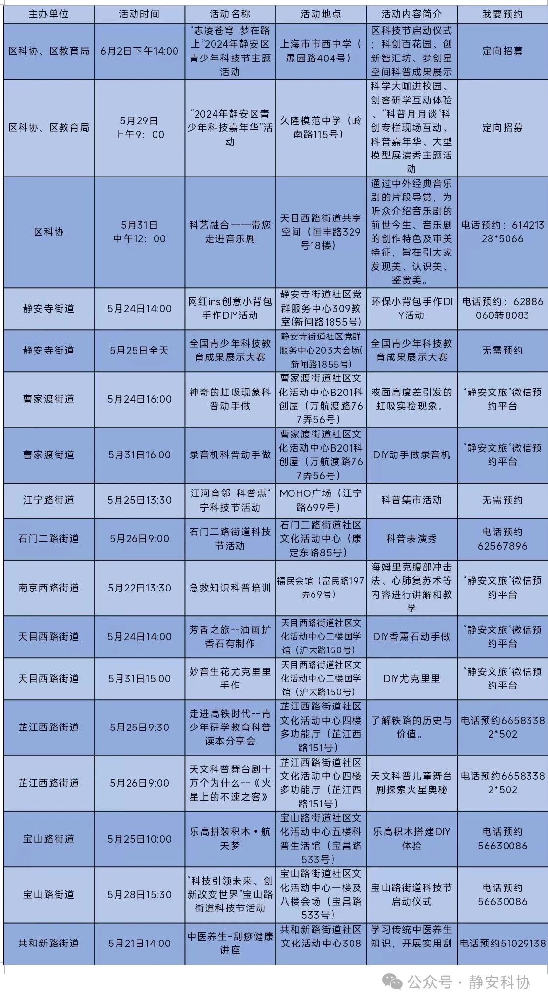 启动仪式只是开始,未来一周将有更多精彩来袭!记者从静安区科协获悉,2024年静安科技节期间,区科协、各科普基地、街镇将陆续开展300多场科技创新、科学普及和服务科技工作者活动。