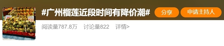 夏天到了,广受喜欢的水果榴莲,又成了大家关注的焦点。近些天,各地“榴莲降价”相关话题多次登上微博热搜: