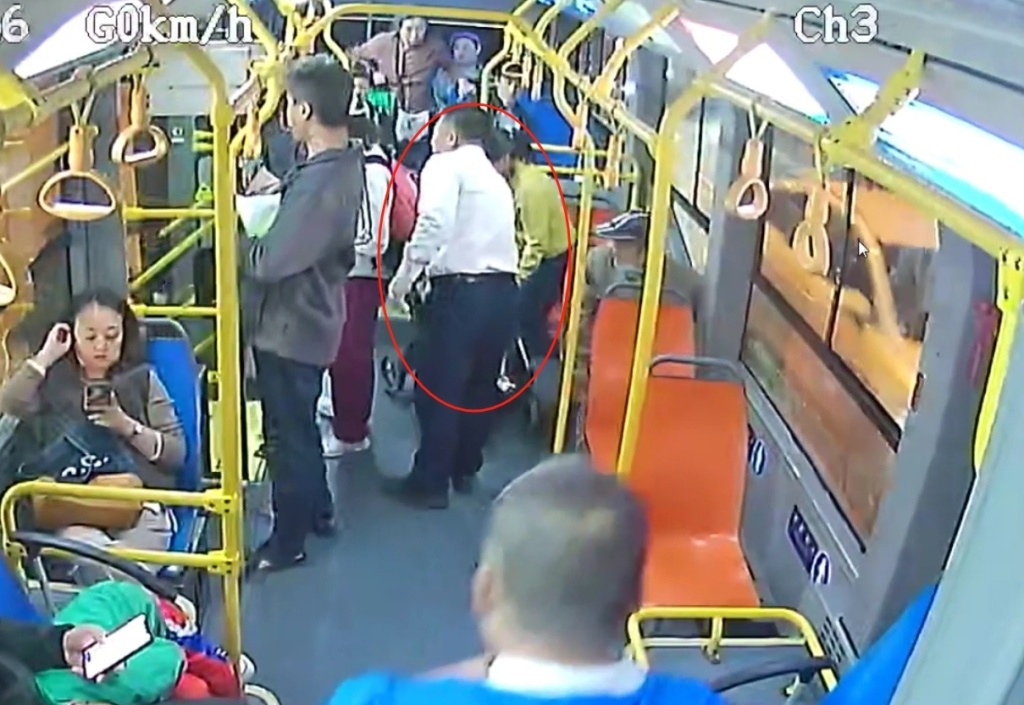 车辆行驶到延安二路站点时,前排一位男乘客主动提出帮助女乘客,柳斌发现后表示:“没关系,我来吧。”然后,他小步跑到后门和女乘客一起将婴儿车抬至车下。上车后,前排男乘客表示:“师傅,你真好,给你点个赞!”
