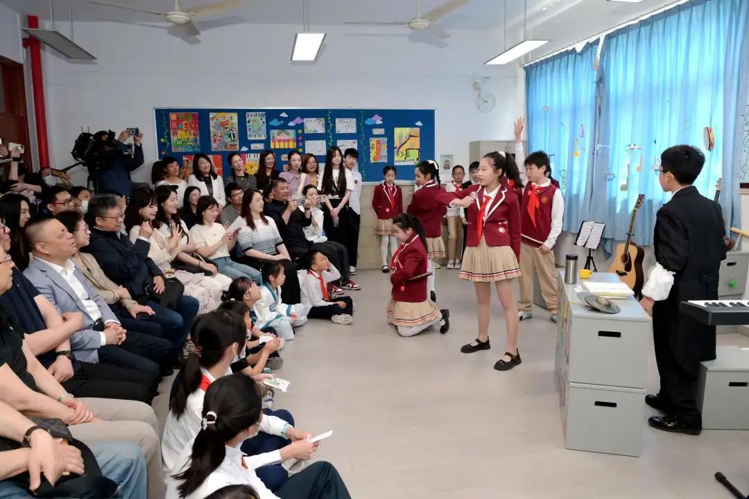 这是上戏附校在5月24日举行的“戏剧小镇,班班有戏”校园艺术节现场。当天,学校正式发布了校园吉祥物,还以“龙行中华 ,戏韵华夏”为主题,开展了2024年度“戏剧小镇,班班有戏”的活动。