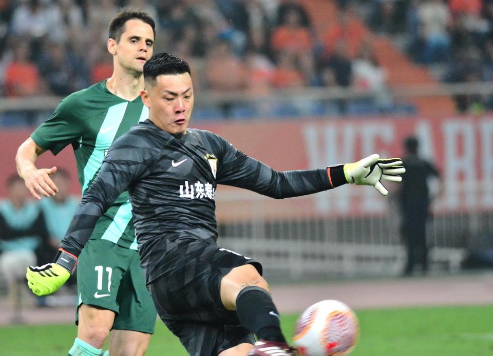 5月25日晚,济南奥体中心体育场,山东泰山队大胜浙江队,赛后王大雷受到球迷的热烈欢呼。