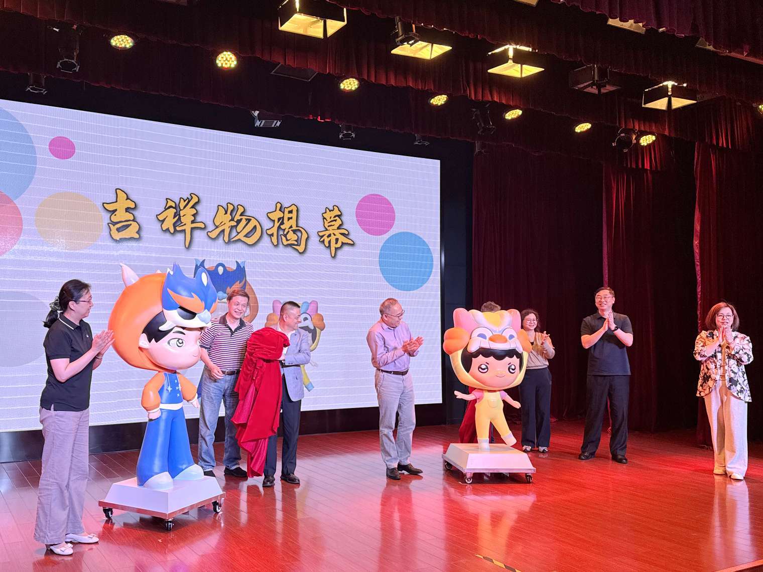 当两只1.5米高、以中华戏剧起源——傩戏面具为创作灵感的校园吉祥物在上海戏剧学院附属静安学校大礼堂正式亮相时,引来了在场同学们的一片惊叹声,大家纷纷表达着自己的喜爱之情,还一起商量着要打开脑洞、发挥创意,为两位新朋友起最响亮、最好听的名字。