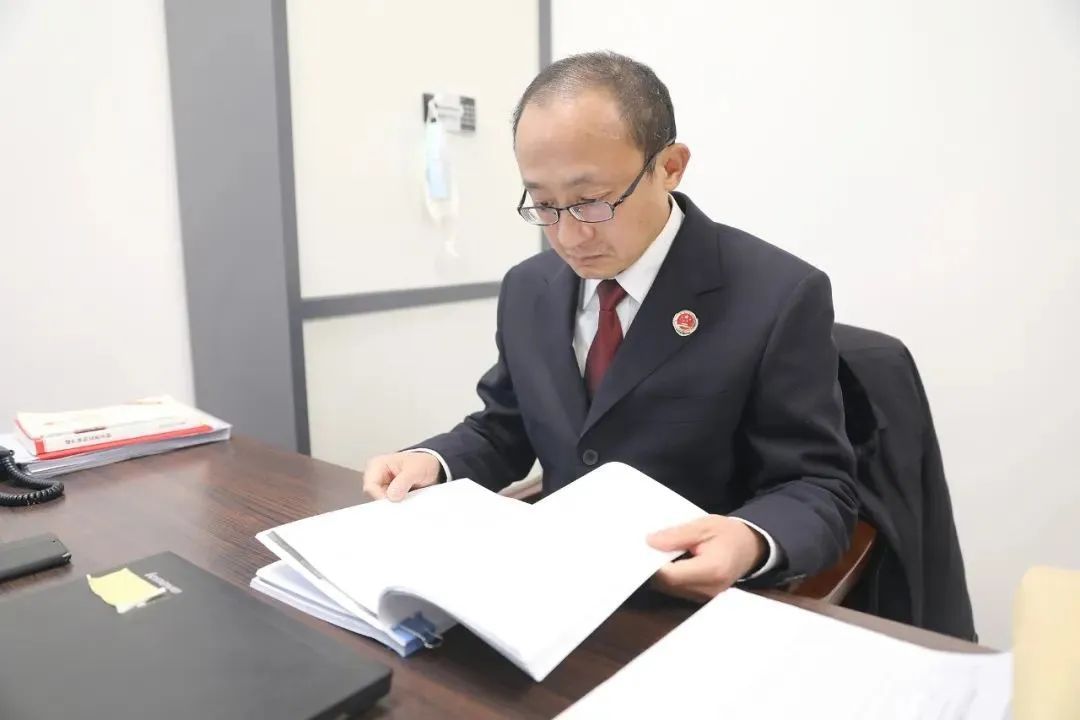 江苏省镇江市润州区检察院党组书记、检察长鲍建武在认真审查案件材料。