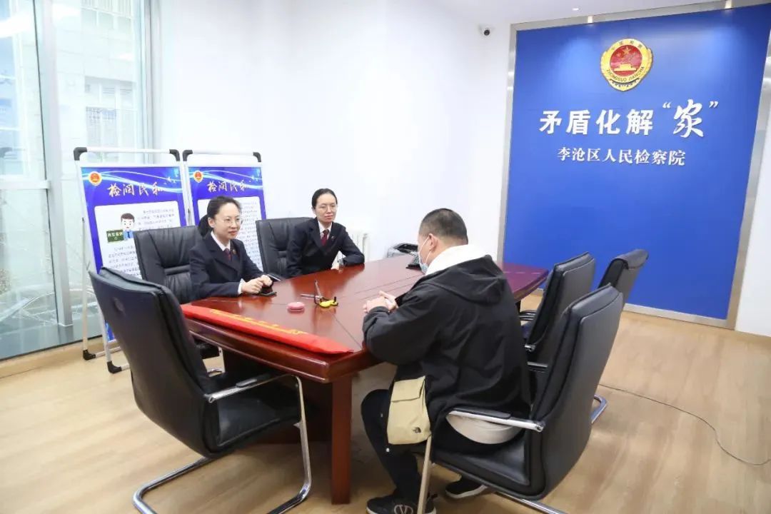 山东省青岛市李沧区检察院检察官在询问当事人。