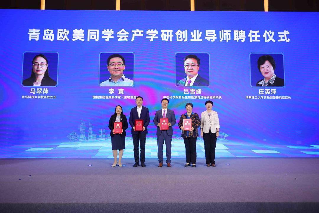 为进一步发挥好欧美同学会“人才库”、“智囊团”、“生力军”的作用,会上举行了青岛欧美同学会产学研创业导师聘任仪式,青岛欧美同学会副会长、青岛市科技局副局长徐凌云为专家颁发聘书。聘任中国科学院青岛能源所所长吕雪峰、国投集团首席科学家(生物制造)李寅、华东理工大学青岛创新研究院院长庄英萍、青岛科技大学教务处处长马翠萍担任青岛欧美同学会、中国科学院青岛能源所产学研创业导师,为在青创新创业的科研与产业工作者提供理论技术和成果转化的支撑辅导。