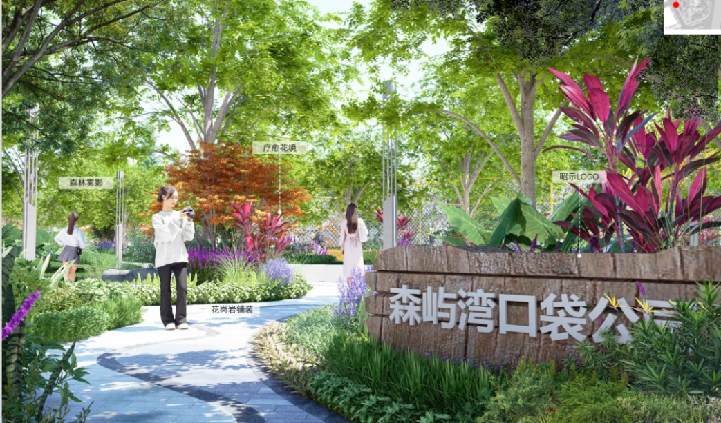 该口袋公园的建设工程以“森屿湾”为设计主题,旨在打造生态自然、多元互动、多维体验的都市绿地公园。