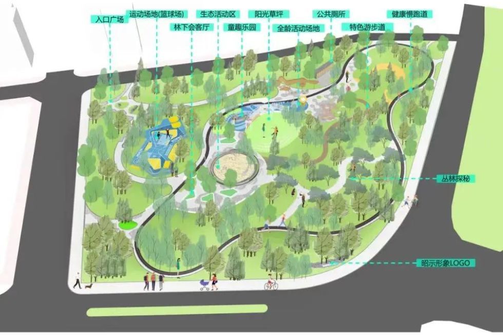 同时,公园在保留现有常绿乔木的前提下,结合活动场地改造,将增种可体现季节变化的落叶乔木,如银杏、无患子、桂花等,打造绿氧时尚的“四季”花园。