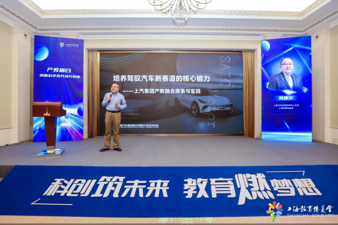 上海汽车集团培训中心主任蒋建华分享题为“培养驾驭汽车新赛道的核心能力⸺上汽集团产教融合的探索与实践”的案例。智能新能源汽车新赛道对职业教育培养的智能网联汽车人才提出新要求,培训中心依托全国智能新能源汽车行业产教融合共同体,赋能新知识结构的新教学活动载体,培养车辆关键技术、信息交互关键技术和基础支撑关键技术等职业核心能力。