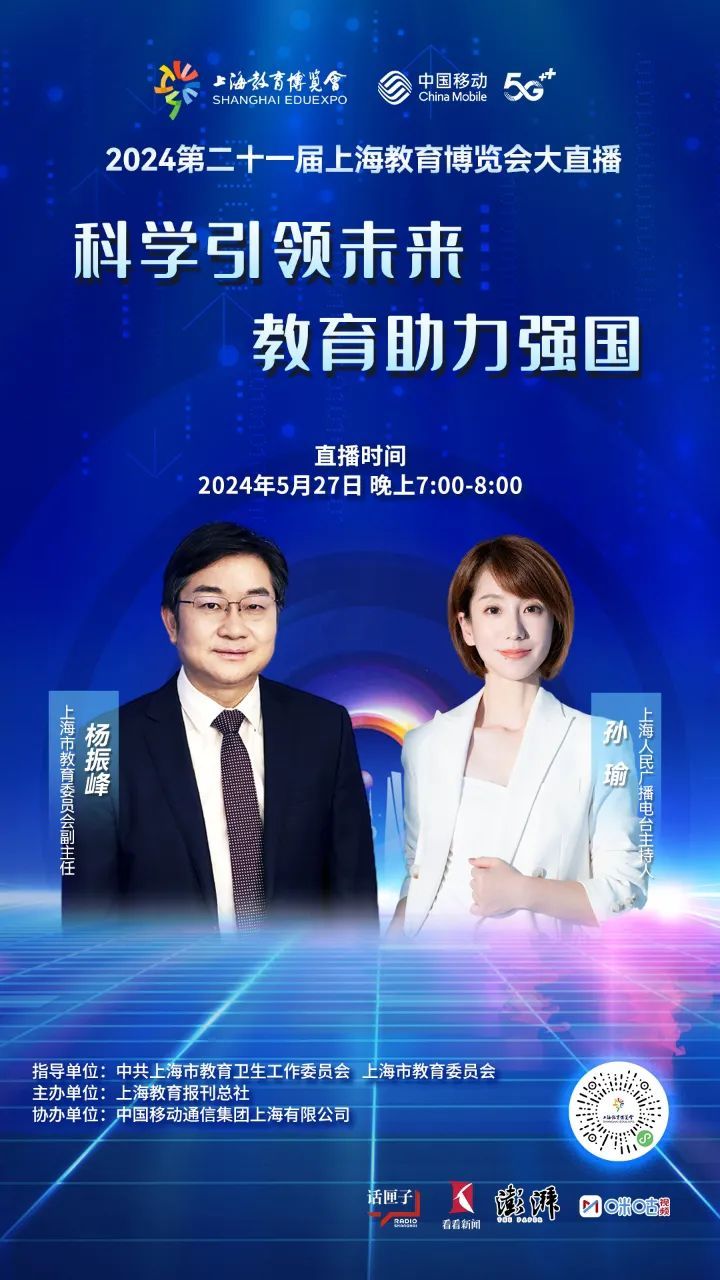 5月27日首场直播将邀请上海市教育委员会副主任杨振峰走进演播室。