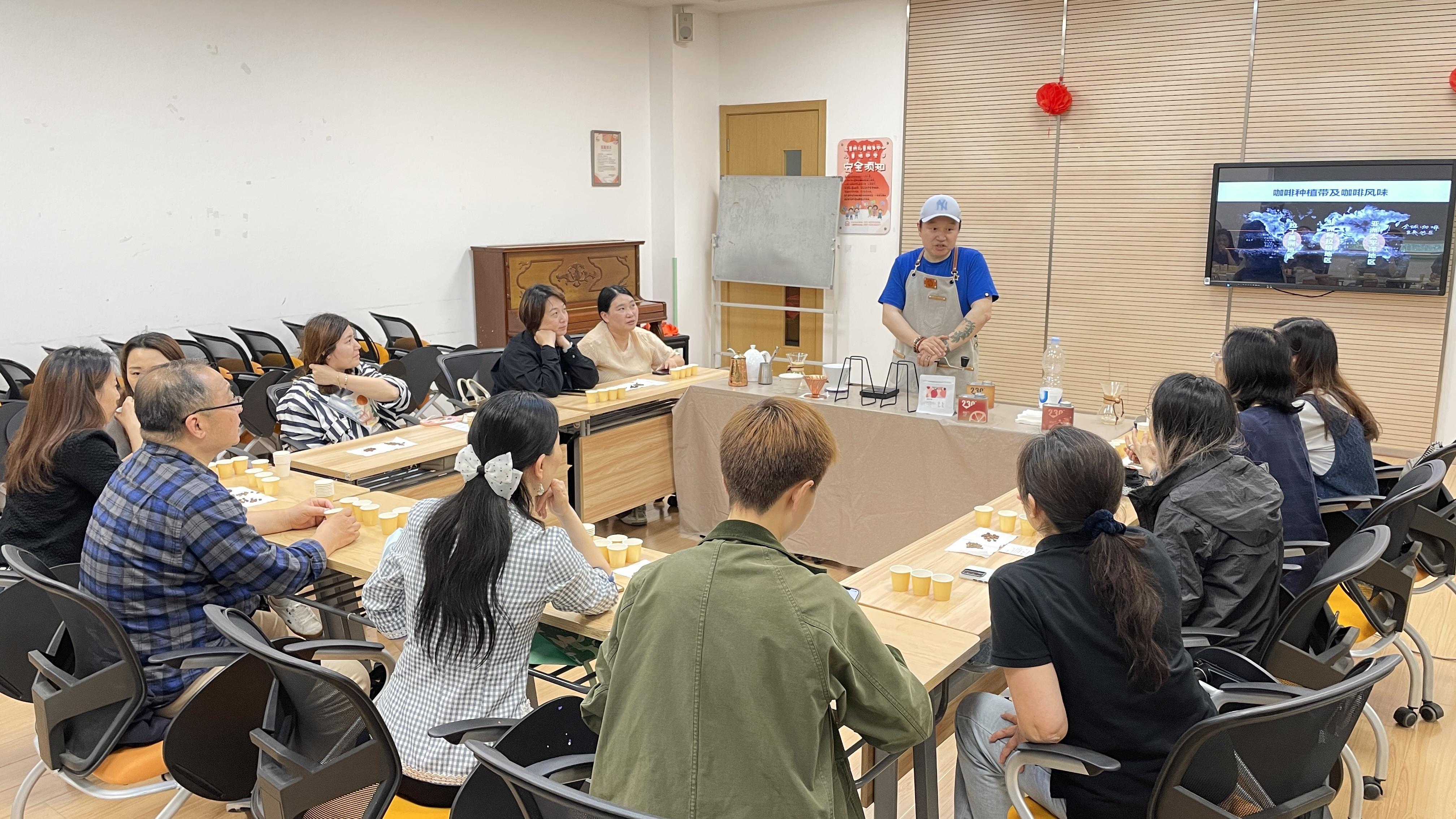 此次课程邀请了星巴克咖啡的培训师,手把手帮助学员了解咖啡种类和冲泡要点,以及“品鉴”咖啡的方法,这让很多学员受益匪浅。“我平时就喜欢喝咖啡,今天的系统课程帮助我全面了解了咖啡的冲泡,非常开心。”学员们表示。