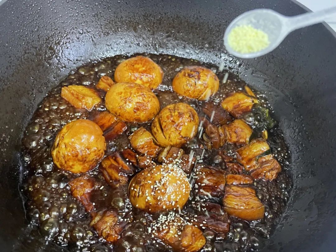 6.大火转小火,焖半小时,开盖后转大火收汁,放少许鸡精提味。