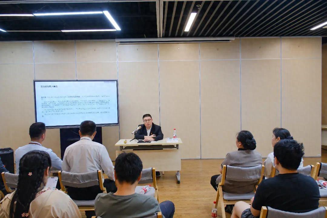 当天,在漕河泾街道宏润汇公共法律服务客厅里,上海市徐汇区人民法院“甘棠树下”社区法官马振远,以“《民法典》与劳动合同法”为主题开展线下法治讲座,对就业新形势下的劳动合同法进行浅析。