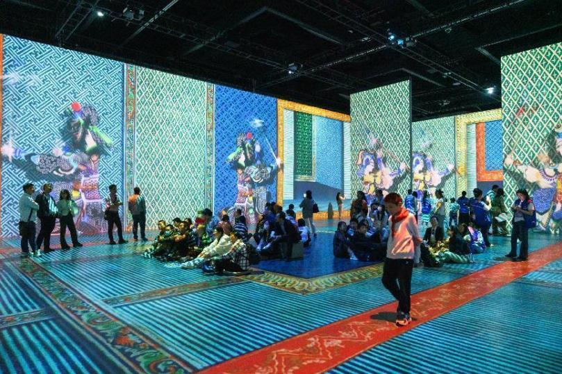 在光影展览中,师生们可以看到不同时代虚构或是真实的人物出现在同一个平行宇宙中;社火民俗,杂耍、花车等传统民俗内容在现代科技的加持下,通过二维三维的折叠变幻,展现出了千变万化的色彩组合。除了用眼看,在展厅的不同区域还能听到皇城的热闹非凡、才子佳人的浪漫剧目以及街头百姓的家长里短。现场还融合了琵琶、古琴、古筝等传统乐器的演奏,让观众可以全身心地沉浸于当代皮影艺术的魅力中,与皮影人物一起经历情节的起伏变化,沉浸在这一奇幻世界中。“这和我以前看过的皮影戏不一样,在这里我不只是观众,更像是一个参与者。”一位学生激动地和记者聊道。