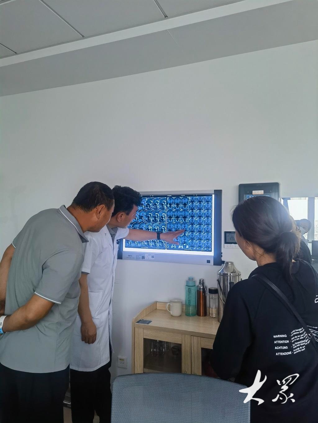 殷长江正在给患者看查体报告。