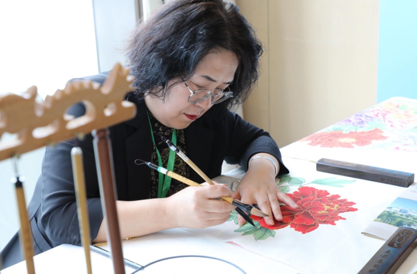 心中有沟壑,笔墨做山河。巨野工笔牡丹画集国花、国画、国礼于一身,是菏泽牡丹衍生品的卓越代表,是代表山东特色文化的一张亮丽名片。巨野县有农民女画师1万余人,占全县书画从业人员的80%以上。同时结合非遗文化进校园等活动,带领孩子们近距离体验优秀传统文化魅力,推动增强文化自信。