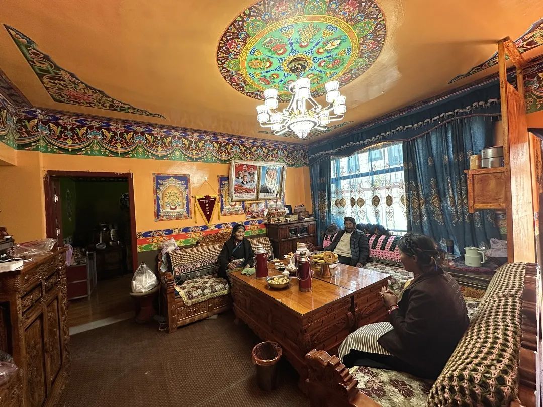 搬迁后的新居共有10间房,面积183.86平方米。宽敞明亮的客厅、极富藏族特色的装饰及家具,让村民旺堆家显得生机勃勃。旺堆感慨道,“以前的老房子太简陋了,跟现在的新家完全没法比,非常感谢上海的援藏干部们,他们帮助我们村民实现了安居梦。”