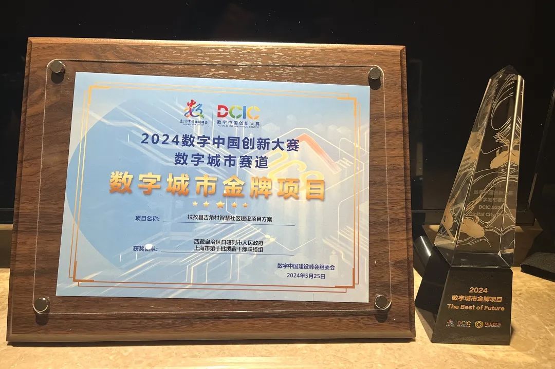 近日,第七届数字中国建设峰会暨2024数字中国创新大赛·数字城市赛道颁奖典礼在福建省福州市举行。颁奖典礼上,由西藏自治区日喀则市人民政府、上海市第十批援藏干部联络组共同选送的《拉孜县吉角村智慧社区建设项目方案》,荣获2024数字中国创新大赛·数字城市赛道数字城市金牌项目。这是西藏首次获得数字城市金牌项目,也是上海援藏项目首次获奖。