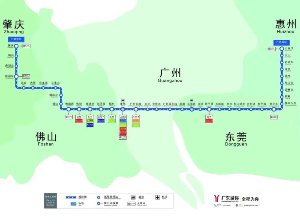 据了解,广佛南环(佛山西站-番禺站)、佛莞城际铁路(番禺站-东莞西站)开通运营后,分别与已开通的佛肇城际铁路(佛山西站-肇庆站)、莞惠城际铁路(东莞西站-小金口站)首末相连,实现“四线”贯通运营,形成一条东起惠州、西到肇庆,横跨5座城市的东西向城际交通大动脉,全长258公里,有效加强广州、佛山、肇庆、东莞、惠州等5个城市的区域交通联系,是“轨道上的大湾区”重要里程碑事件。