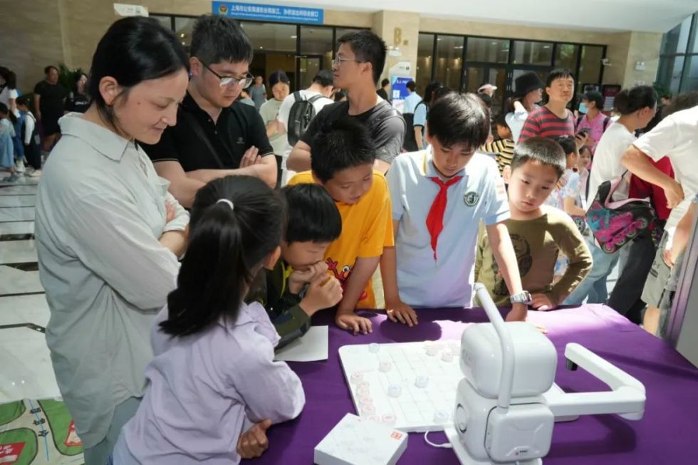 除了场内开幕仪式,外场科普集市通过无人机障碍穿越、机甲操作、下棋机器人对弈、3D打印笔绘制、磁石迷阵、智能机器人互动、无人车足球、创意机器人搭建、电子拼图和汽车越野等丰富项目,为张江居民提供充满趣味的亲子科普体验。