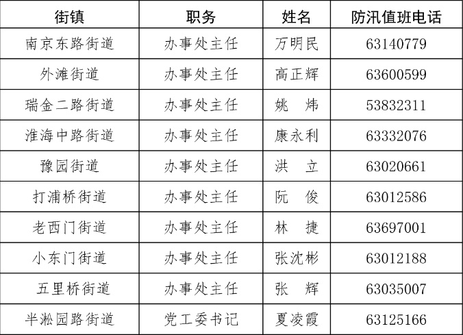 此外,为进一步落实各级防汛责任制,近日,黄浦区各街道防汛责任人和电话也已公布。