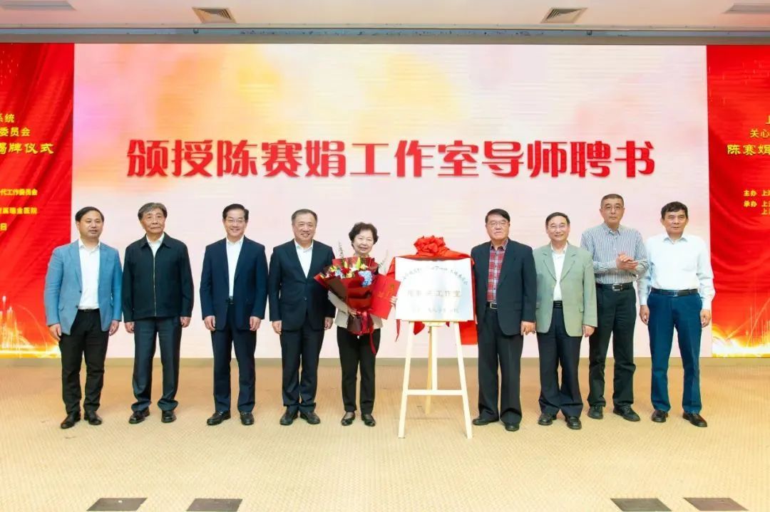 市教育系统关工委主任李宣海,市教育系统关工委执行主任高德毅,医学院原党委书记、关工委名誉主任孙大麟,上海交通大学医学院附属瑞金医院党委书记瞿介明,市教育系统关工委驻会副主任陈其昌共同为“陈赛娟工作室”揭牌,并由市教育系统关工委主任李宣海颁授陈赛娟工作室导师聘书。