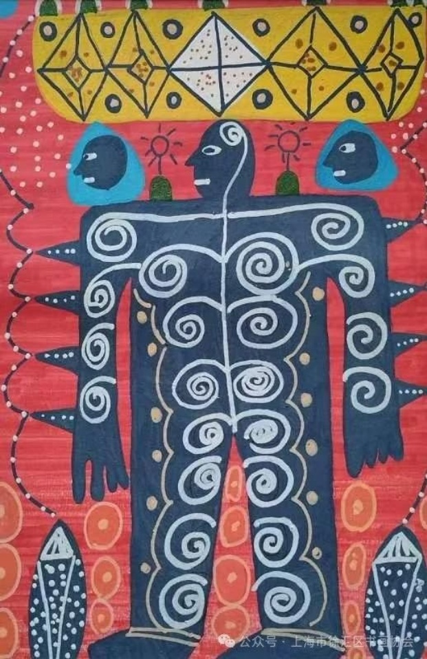 《戴帽子的欧洲人》《非洲人》《我们的现在和未来》《龙腾中华》《我的梦想》……画作题材丰富,表现手法各异,从中可以看到孩子们丰富的想象力、强烈的好奇心,以及他们看世界的视角。